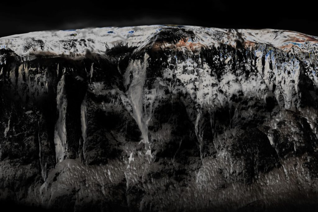 Fotografien realer Berglandschaften verlieren durch digitale Bearbeitung ihre eindeutige Verortung. Die Bilder zeigen Orte, die zugleich existieren und erfunden sind. In dieser Schwebe wird Wahrnehmung selbst zum Thema – als etwas Formbares, subjektiv Assoziatives. Die Bilder laden dazu ein, die Grenzen zwischen Realität und virtueller Welt zu hinterfragen und den eigenen Blick neu zu justieren.